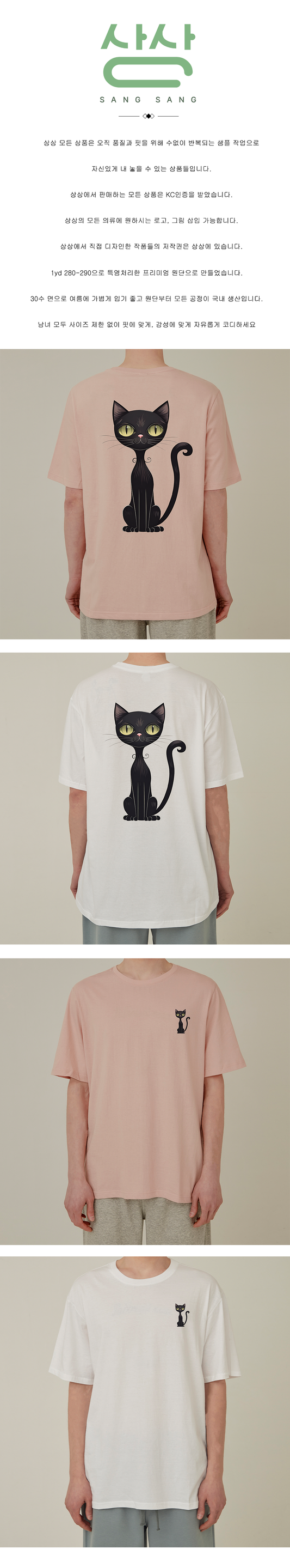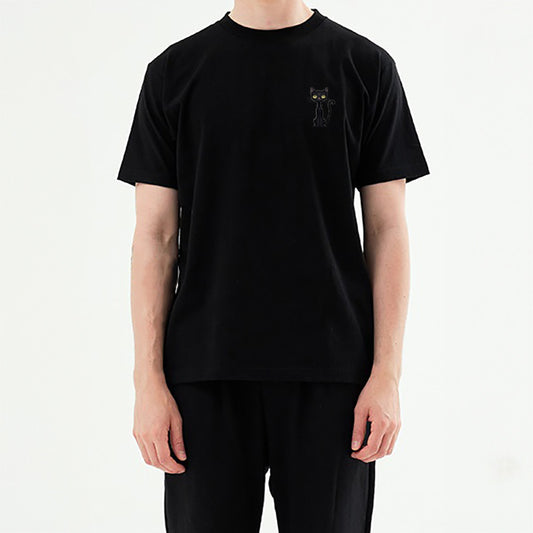 S-2XL Korean-made Black Cat 100% cotton 16 essential short-sleeved T-shirt (for men and women)