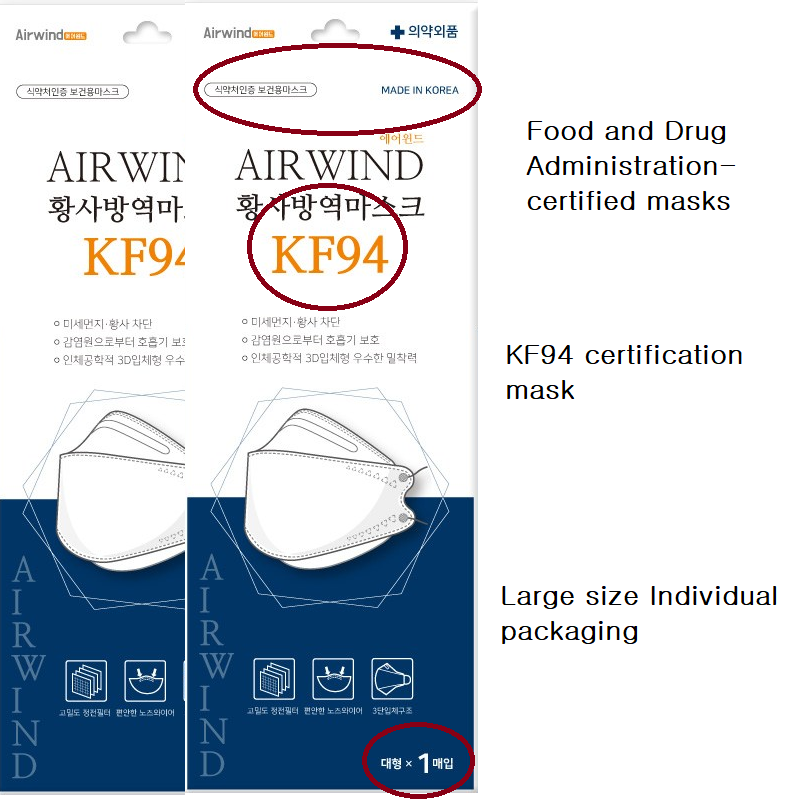 쇼피파이 Made in Korea quadruple structure Airwind KF94 Mask 100pieces