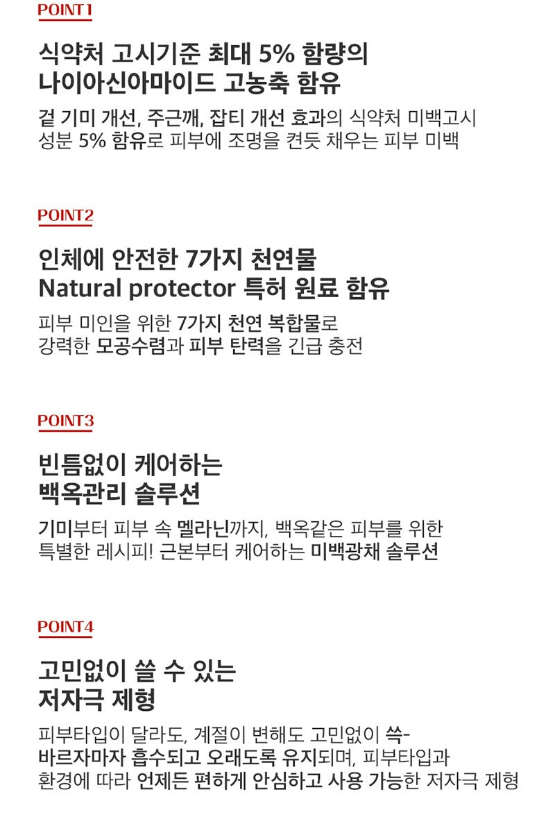 The maximum content of niacinamide and tranexamic acid, a key ingredient in white jade care, help improve concentration from whitening and gloss to melanin in the skin.