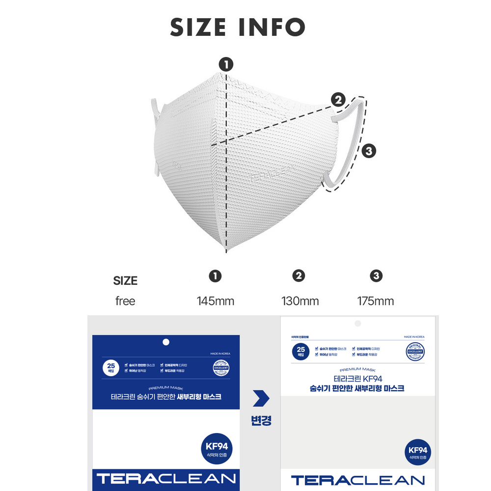 Made in Korea TERACLEAN KF94 Mask 100pieces(25pieces x 4Pack)