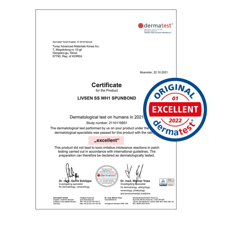 We used the fabric that received the highest grade of Dermatest as a skin irritant.
