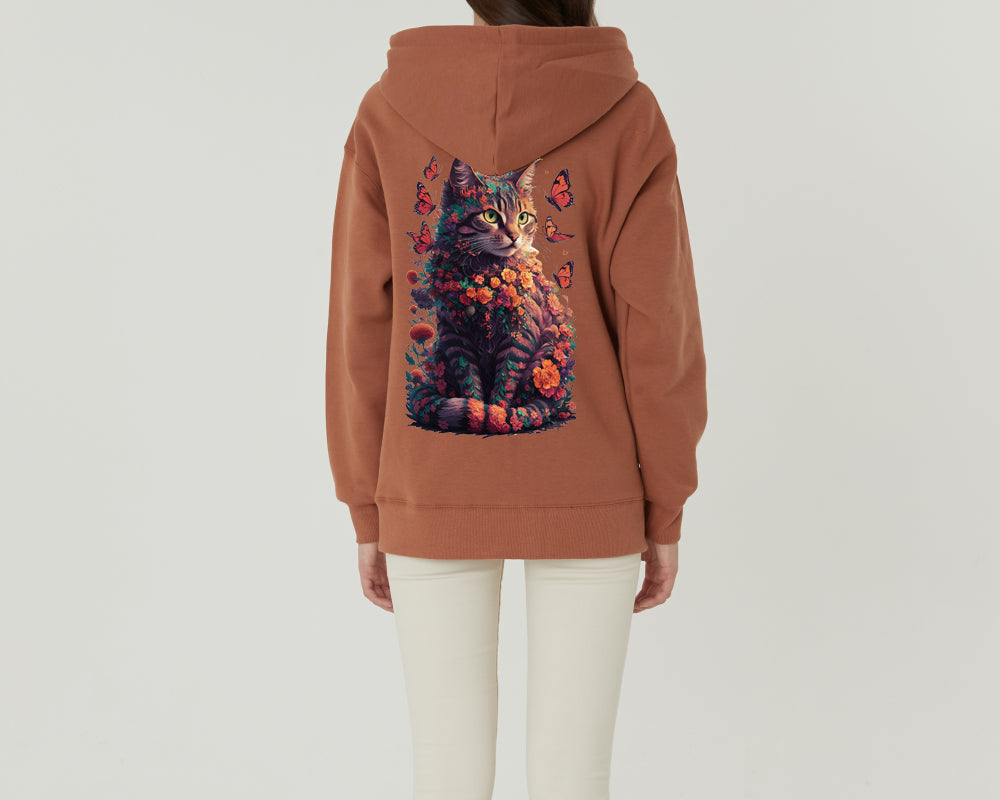 S-6XL Korean-made fabric Special napping flower cat (for men and women) Hooded zip-up big size